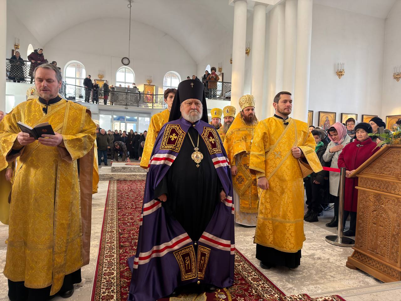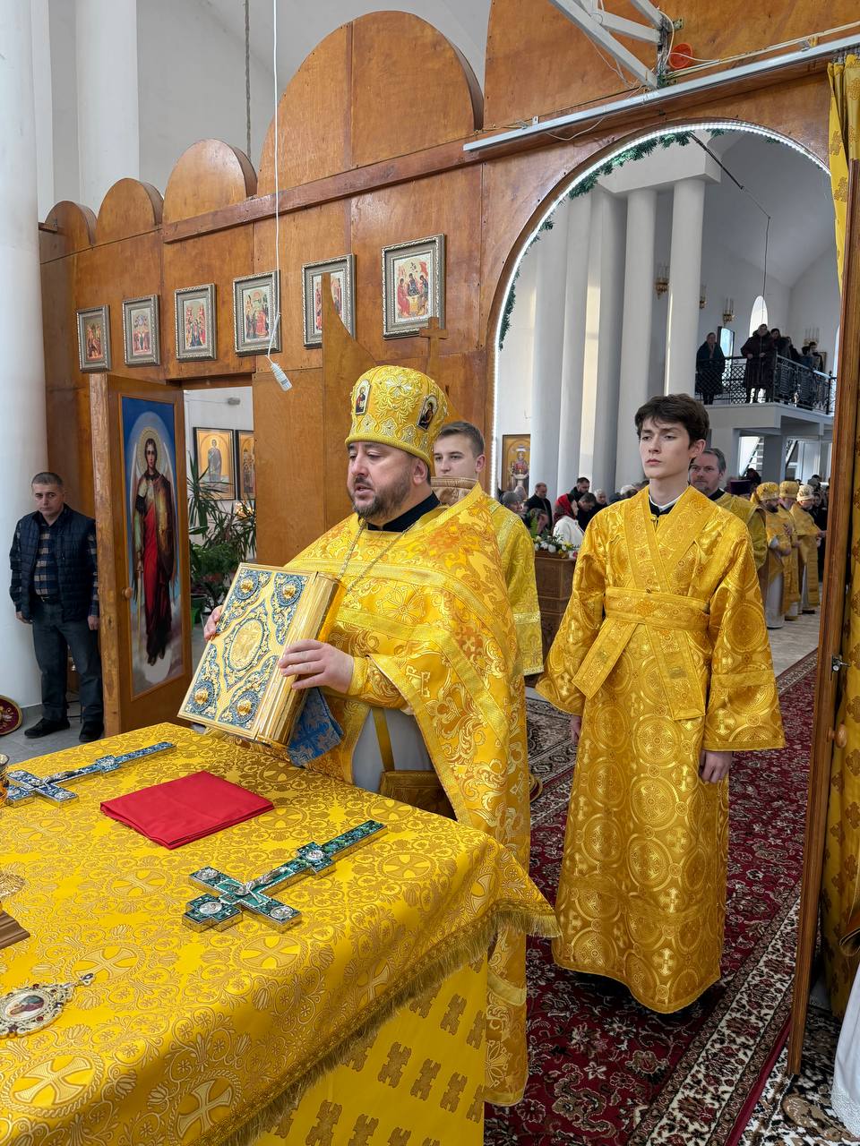 Alături de Chiriarh au coliturghisit: protoiereul mitrofor Mihail Mungiu, secretar eparhial, protoiereul mitrofor Anatolii Rașcenco, parohul bisericii gazdă, Preacuviosul Arhimandrit Siluan (Dronic), starețul Mănăstirii „Sfântul Cneaz Vladimir” din orașul Cahul, precum și un sobor de preoți și diaconi.
